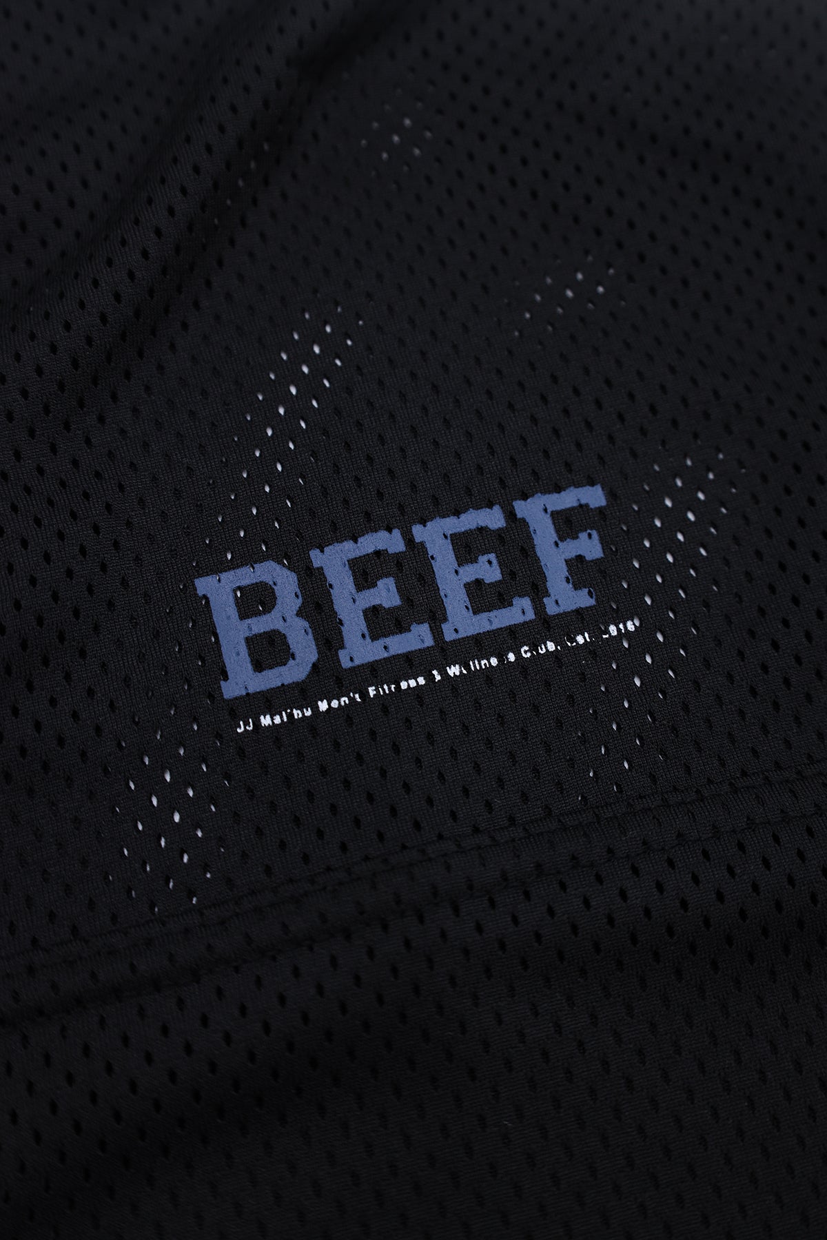 • Fun printed chest logo says "beef"